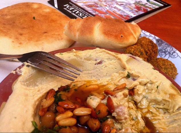 Στάση για φαλάφελ και χούμους με κουκουνάρι: στο μουσουλμανικό τετράγωνο της Παλιάς Πόλης αφθονεί το φθηνό και νόστιμο φαγητό αραβικής κουζίνας.