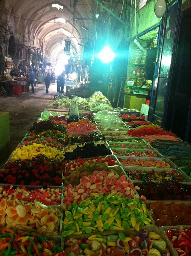 Το βράδυ της ίδιας μέρας στην ίδια πόλη. Λίγα μόλις βήματα από την Πύλη της Δαμασκού, ο μικρός Παλαιστίνιος θα αγοράσει για μερικά σέκελ το γλυκό, αφράτο ψωμάκι σε σχήμα κουλουριού (ka’ak) -με χουρμάδες, σουσάμι ή σκέτο- της παραδοσιακής του κουζίνας. Ή μερικά φθηνά ζαχαρωτά, από τον πάγκο. Πολλοί κόσμοι βάζουν το χέρι τους για να φτιαχτεί ο ένας κόσμος που περικλείουν τα παλιά τείχη της Ιερουσαλήμ.