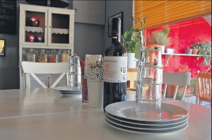 Γλάστρες με ελιές και μυρωδικά σε καλωσορίζουν σ’ένα μικρό, καλαίσθητο χώρο με σπιτική ατμόσφαιρα: απο-τελούμενο ουσιαστικά από δύο δωμάτια –ιδανικό για να νιώθεις την προσωπική επαφή, με το κόκκινο του πάθους (για το καλό φαγητό και όχι μόνο) να κυριαρχεί σε συν-δυασμό με την ηρεμία που αποπνέει το λευκό. Η ανοιχτή κουζίνα είναι επιμελώς «κρυμμένη» πίσω από κρασιά και βαζάκια με εκλεκτά προϊόντα ενώ οι μαυροπίνακες σε ρόλο «ντελάληδων» ενημερώνουν για το μενού της ημέρας και τα υπόλοιπα καλούδια που θα βρεις εδώ.
