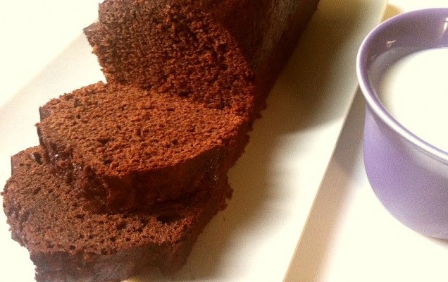 Αδειάζετε το μείγμα σε καλά βουτυρωμένη μακρόστενη φόρμα μήκους περίπου 30 εκ. και το βάζετε σε καλά προθερμασμένο φούρνο στους 180° C. Ψήνετε για 55′-60′ μειώνοντας στους 170° C αν ο φούρνος σας είναι δυνατός. Αφήνετε άλλα 10′ το κέικ μέσα στο σβηστό πια φούρνο. Αφήνετε το κέικ να κρυώσει καλά πριν ξεφορμάρετε και σερβίρετε.