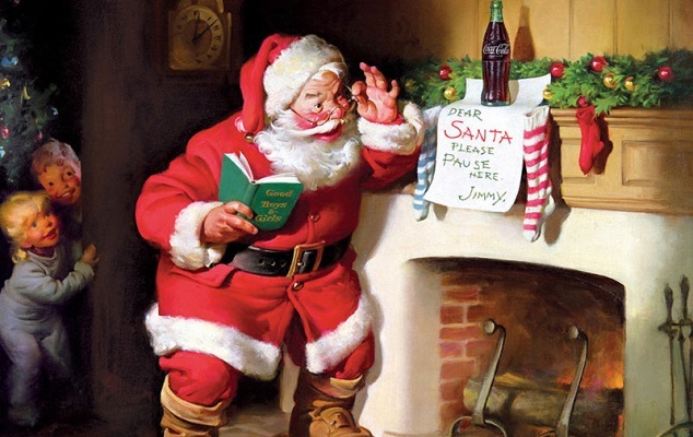 Τον Δεκέμβριο του 1823 ένα χριστουγεννιάτικο ποιηματάκι, που έγινε γρήγορα πολύ δημοφιλές, το «Η Επίσκεψη του Αγίου Νικολάου», πιο γνωστό ως «Η νύχτα πριν απ’ τα Χριστούγεννα» (The Night Before Christmas), του Clement Clarke Moore, θα συνδέσει για πρώτη φορά το μύθο τον Άγιο Νικόλα με έναν καλοκάγαθο γέροντα-ξωτικό που κυκλοφορεί με έλκηθρο, το οποίο σέρνουν ελαφάκια, μπαίνει στα σπίτια μας από τις καμινάδες και μοιράζει γλυκά και παιχνίδια στα φρόνιμα παιδιά. Η σύγχρονη αμερικανική εκδοχή του Santa Claus είναι πια γεγονός και θα επιζήσει ως τις μέρες μας. Τι λείπει απ’ αυτό που ξέρουμε σήμερα ως Santa Claus (εκτός από το «χο, χο, χο»); Η φιξαρισμένη εικόνα του. Εκείνο το στερεότυπο του ροδομάγουλου, στρουμπουλού παππούλη με την κατακόκκινη φορεσιά… Αυτή η εικόνα για τον Santa, θα πρέπει να περιμένει άλλο έναν αιώνα για να κυριαρχήσει ανάμεσα στις διάφορες απεικονίσεις. Μέχρι το 1931, δηλαδή. Τη χρονιά, που ο καλλιτέχνης Haddon Sundblom πήρε εντολή από την Coca Cola να σχεδιάσει τη χριστουγεννιάτικη διαφημιστική καμπάνια της με πρωταγωνιστή τον Άγιο των Χριστουγέννων.
