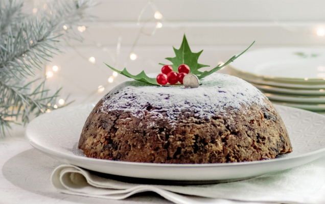 Tο γλυκό-σύμβολο των Χριστουγέννων για τους Αγγλοσάξονες έχει τις ρίζες του σε μεσαιωνική συνταγή που επέζησε χάρη στη βαθιά της γεύση. Τα μεσαιωνικά στοιχεία αυτής της συνταγής, εντοπίζονται, καταρχάς στον τρόπο που βράζεται είτε κρεμασμένη πάνω από τον ατμό μιας κατσαρόλας, τυλιγμένη, βέβαια, σε μια καθαρή (πλυμένη με μη αρωματικό σαπούνι) πετσέτα της κουζίνας είτε, με τις ώρες, μέσα σε φόρμα στο μπεν μαρί. Ο πλούτος των σημερινών υλικών της δεν μπορεί να συγκριθεί, βέβαια, με την πληθώρα ετερογενών υλικών που συμμετείχαν στην αρχική της εκδοχή, τότε που τα στομάχια των ανθρώπων δούλευαν σε διαφορετικούς ρυθμούς και οι ουρανίσκοι τους δεν δυσανασχετούσαν από τον καταιγισμό ετερόκλιτων και πληθωρικών γεύσεων, όπου το γλυκό παντρεύεται με το αλμυρό, τα ψάρια με τα κρέατα και όλα τους αρτύζονται με αποξηραμένα φρούτα και μπαχαρικά.