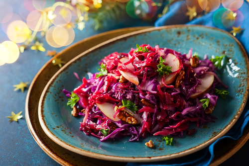 Σαλάτα με μοβ λάχανο, παντζάρι τουρσί και μήλο