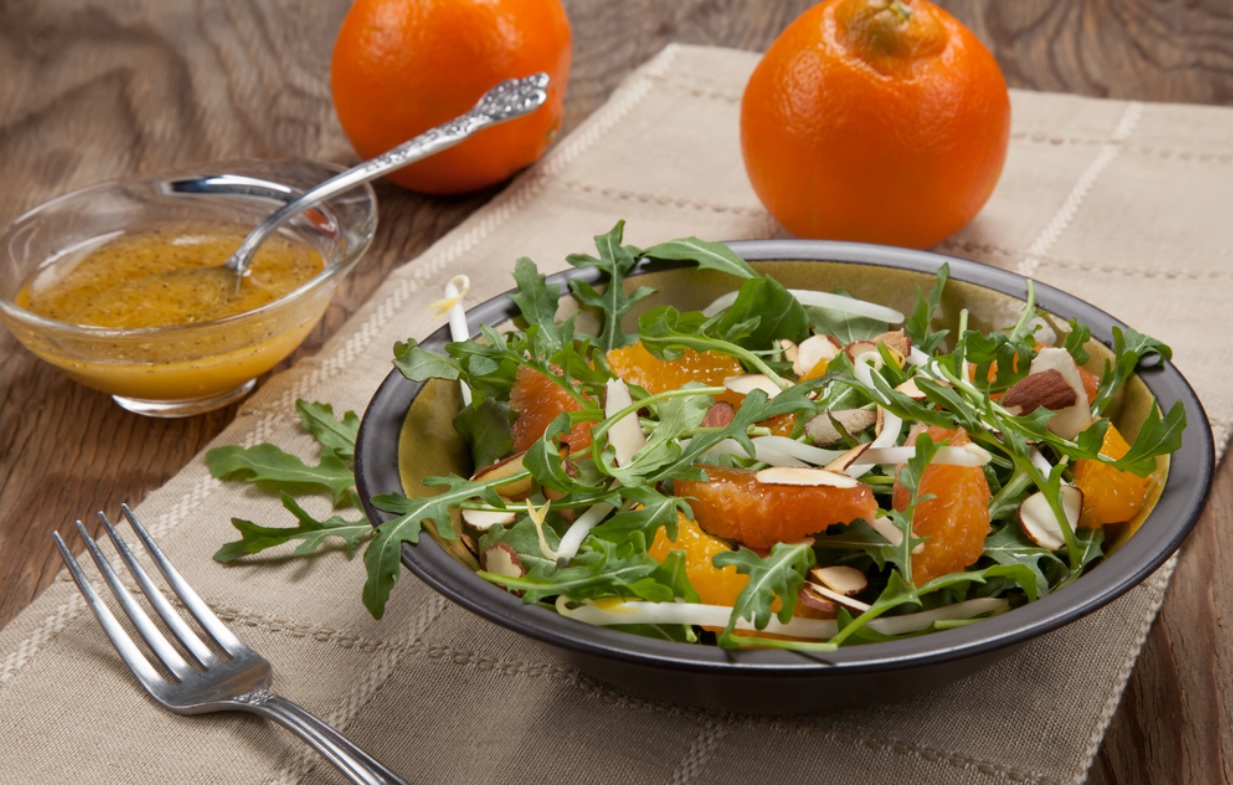 Σαλάτα με ρόκα, τυρί και χυμό εσπεριδοειδών