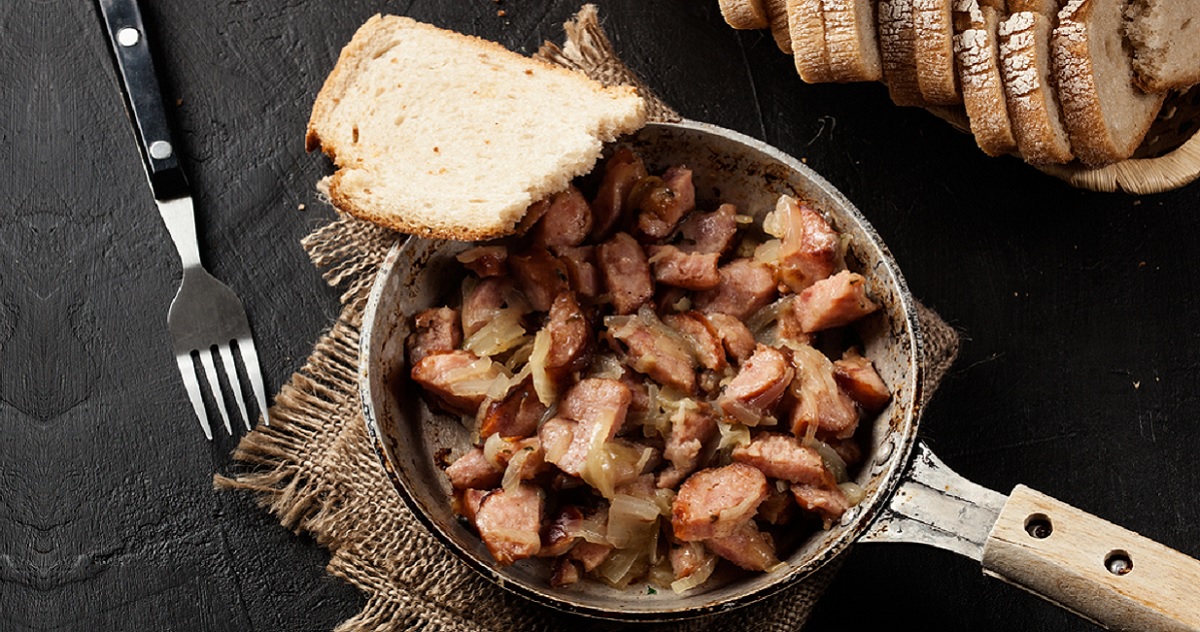 Χοιρινό ή λουκάνικα και ξεροτήγανα