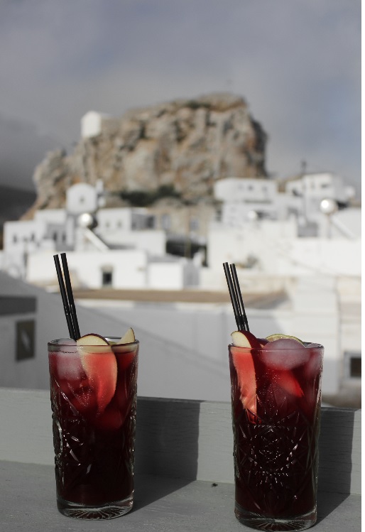 Στεγάζεται σε μια πανέμορφη, παλιά, διώροφη, αμοργιανή κατοικία με δυο μπαλκόνια που σου χαρίζουν μια από τις καλύτερες θέες του νησιού. Από εκεί –με ένα Strawberry Collins από φρέσκες φράουλες στο χέρι– μπορείς να αγναντεύεις το ιστορικό κάστρο, τη χώρα με τα σπίτια και τα σοκάκια της, τον κόλπο των Καταπόλων, τους μύλους και φυσικά τον ήλιο που δύει…