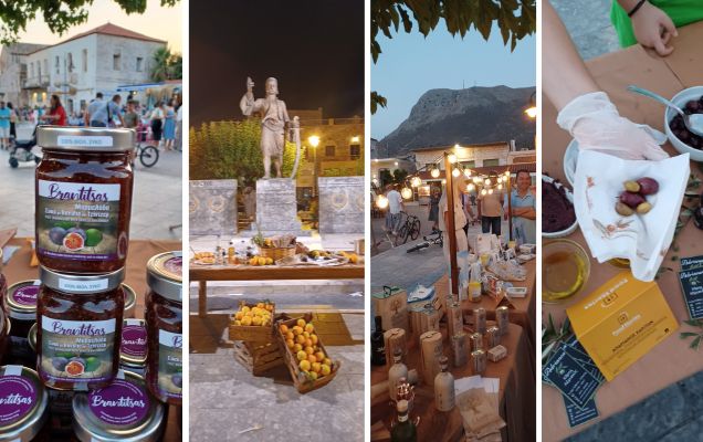 Ένας ατέλειωτος μπλε ουρανός, οι κοντούλες ελιές, κάποιες αυλές λουλουδιασμένες και ο καυτός καλοκαιρινός ήλιος, σού θυμίζουν βέβαια σταθερά ότι δεν είσαι στο φεγγάρι, αλλά στην άγρια πλευρά της μεσογειακής γης. Το μεγάλο άγαλμα του Πετρόμπεη στην κεντρική πλατεία σου θυμίζει επίσης ότι είσαι στη γη των Μαυρομιχαλαίων… Εκεί διοργανώθηκε το βραδάκι της Κυριακής της 17ης Ιουλίου το 1ο Φεστιβάλ Γαστρονομίας «Peloponnese Food Stories – Ιστορίες Γεύσεων, Ανθρώπων, Πολιτισμού».