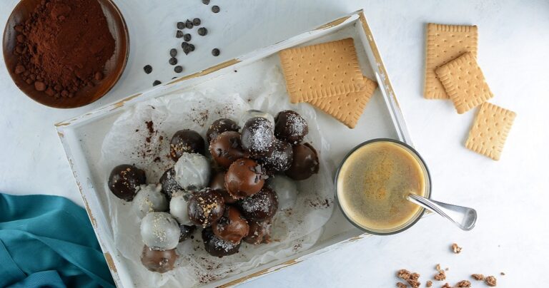 Υλικά: 2 φλιτζάνια κουβερτούρα σε σταγόνες ή 3-4 κουταλιές της σούπας κακάο χωρίς ζάχαρη, 100 γρ. μπισκότα τύπου digestive ή πτι μπερ τριμμένα, 1 κουταλιά της σούπας βούτυρο γεμάτη, 1 κουτί ζαχαρούχο γάλα, επιπλέον κουβερτούρα (κλασική, γάλακτος ή λευκή) αν σκοπεύετε να τα καλύψετε, αλλιώς τα κυλάτε στο κακάο