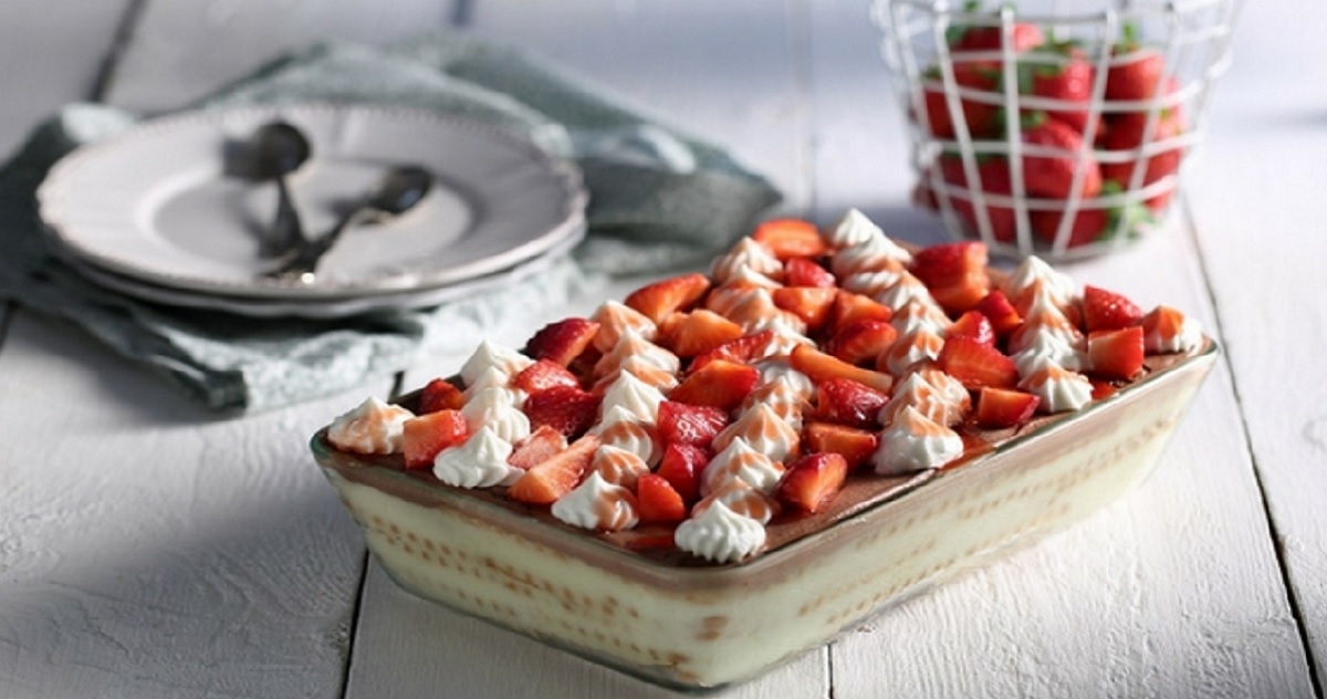 Μια στρώση μπισκότο, μια στρώση βανίλια, μια στρώση φράουλα και …βουαλά το εισιτήριο για τα πιο γλυκά απογεύματα στις αυλές, τις βεράντες και τα μπαλκόνια της πόλης, καθώς ανοίγει ο καιρός.