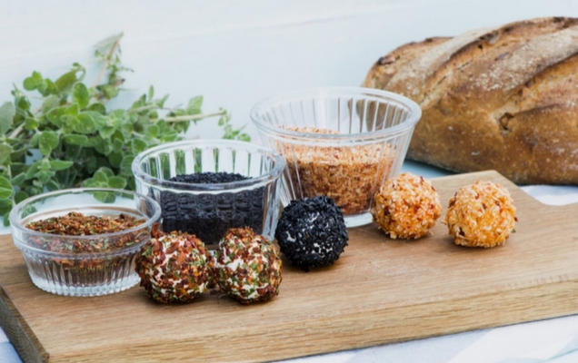 Πώς γίνονται: Ρίχνετε σε ένα άνετο μπολ όλα τα τυριά, τα λιώνετε με πιρούνι και τα ζυμώνετε με τα χέρια να αναμειχθούν καλά. Προσθέτετε λίγο ελαιόλαδο. Πλάθετε το μείγμα σε μπαλάκια και τα περνάτε από τα υλικά που έχετε επιλέξει. Μπορείτε να κάνετε και ανάμειξη υλικών της αρεσκείας. Ξαναζυμώνετε κάθε μπαλάκι ώστε να ενσωματώσει αρωματικά και καρπούς και στο εσωτερικό του. Τα αφήνετε λίγο στο ψυγείο να κρυώσουν και τα κυλάτε άλλη μια φορά στα αρωματικά της αρεσκείας σας.