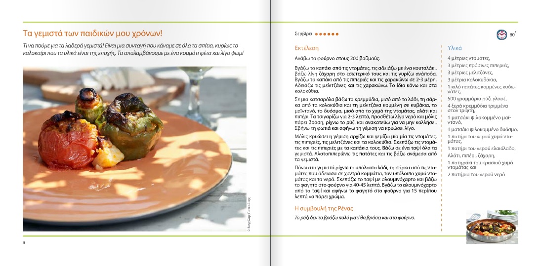 Το «Ρένα της Φτελιάς: Συνταγές που αγαπήσαμε!», που κυκλοφορεί από τις εκδόσεις Στεργίου, και παρουσιάζεται την Τρίτη 30 Σεπτεμβρίου, 6.00 μ.μ.-8.00 μ.μ. στον ΙΑΝΟ, περιλαμβάνει πραγματικά «συνταγές που αγαπήσαμε», αρκετές από τα χέρια της μαμάς μας και όλες μαζί απ’ τα χέρια της Ρένας. Από τα απλούστατα αυγουλάκια με ντομάτες στο τηγάνι μέχρι τα λουκουμαδάκια μπακαλιάρου σκορδαλιά κι απ’ τα φασολάκια χάντρες στην κατσαρόλα με πατάτες μέχρι το κατσικάκι στο φούρνο με ρίγανη και λεμόνι, τα πιάτα που ζωντανεύουν στις σελίδες του βιβλίου ζωντανεύουν μαζί και μερικές απ’ τις καλύτερες στιγμές της ελληνικής κουζίνας. «Οι συνταγές που γράφω, βγαίνουν χωρίς κόπο και ιδιαίτερες δεξιότητες. Αρκεί να ακολουθήσεις τις αναλογίες και τα βήματα εκτέλεσης», δεσμεύεται η «Ρένα της Φτελιάς» απ’ τη σελίδα της στο Facebook και δεν έχουμε λόγο να μην την πιστέψουμε, αν κρίνουμε π.χ. απ’ τα γεμιστά της.