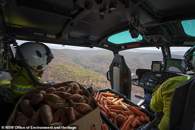 Οι επιχειρήσεις χορήγησης τροφίμων πραγματοποιούνται από το Εθνικό Πάρκο της Νέας Νότιας Ουαλίας και την Υπηρεσία Άγριας Ζωής με ρίψεις από αέρος. Χιλιάδες κιλά καρότων και γλυκοπατάτας πετάγονται σε περιοχές με πληθυσμούς καγκουρό, ενώ μέχρι στιγμής έχουν ριφθεί πάνω από δύο τόνους λαχανικών στα ζώα.
