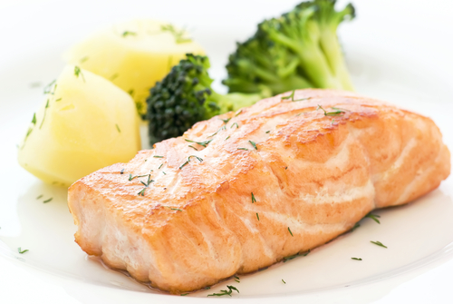 – Ψάρι ψητό (με ελαιόλαδο) και πατάτες βραστές