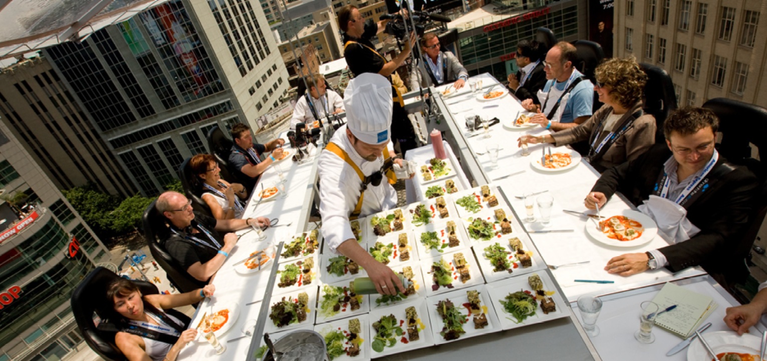 Εκτοτε ακολούθησαν κι άλλες οκτώ ευρωπαϊκές πόλεις όπως η Ρώμη, το Παρίσι, οι Βρυξέλλες, στις οποίες το Dinner in the sky βρήκε φανατικούς υποστηρικτές. Η λειτουργία του είναι πάρα πολύ απλή, ένας γερανός σηκώνει σε ύψος 50 μέτρων αυτή την ειδική πλατφόρμα με την θέα του εστιατορίου να είναι κάτι παραπάνω από μοναδική.Το Dinner in the Sky δεν μπορεί να φιλοξενήσει άτομα με ύψος μικρότερο από 1,5 μέτρο ενώ υπάρχει η δυνατότητα επίσκεψης στην τουαλέτα κατά τη διάρκεια του φαγητού. Απλά ρωτάς τον σερβιτόρο και… κατεβαίνεις.