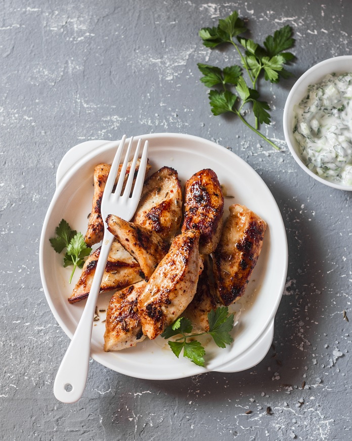 Συνταγή για μαριναρισμένο φιλέτο κοτόπουλο με δροσερή σάλτσα γιαουρτιού