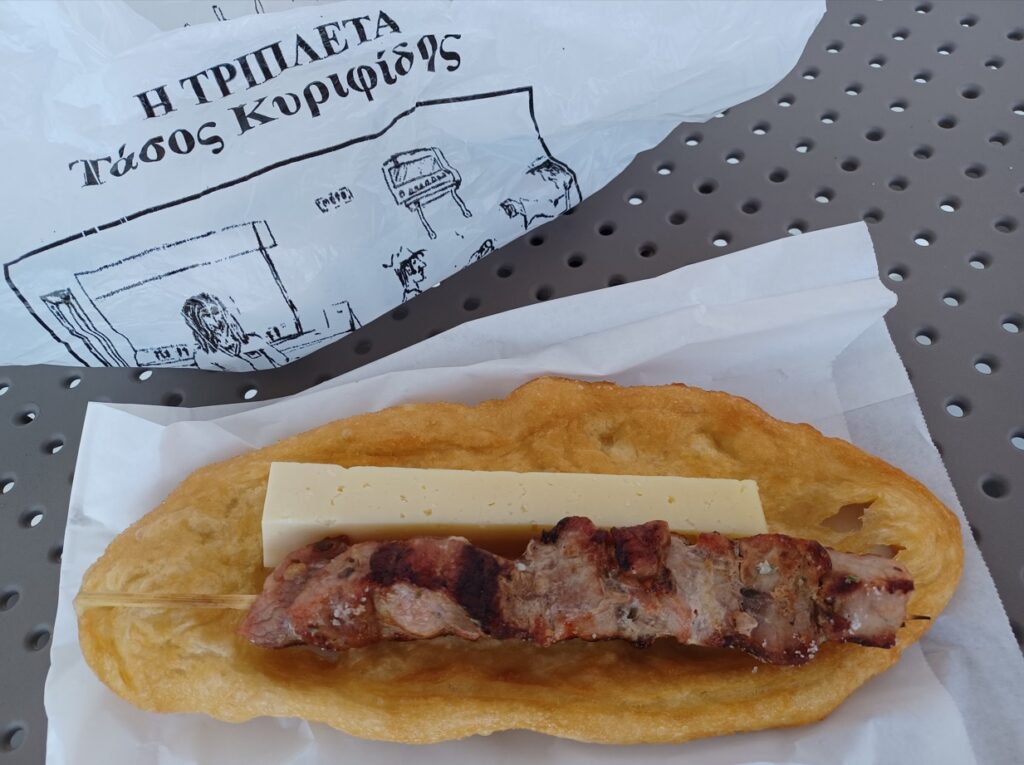 Τι συμβαίνει όταν το χοιρινό και το κεφαλοτύρι συναντήσουν τις παραδοσιακές τραβηχτές πίτες της Μάνης; Έχουμε την περίφημη «τριπλέτα» την οποία και δοκιμάσαμε στο ομώνυμο μαγαζί του Γυθείου.