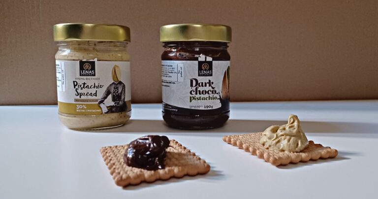 Ταγνωρίσαμε στο Peloponnese Food Stories στα Τρίκαλα Κορινθίας και δοκιμάσαμε το Pistachio Spread – Άλειμμα λευκής κρέμας με φιστίκι χωρίς προσθήκη ζάχαρης με δυνατό άρωμα, έντονο χρώμα και πλούσια γεύση φιστικιού και το Dark Choco Pistachio κρέμα κακάο με φιστίκι που κάνει και για vegan διατροφή, ενώ δεν περιέχει φοινικέλαιο-λακτόζη-γλουτένη.