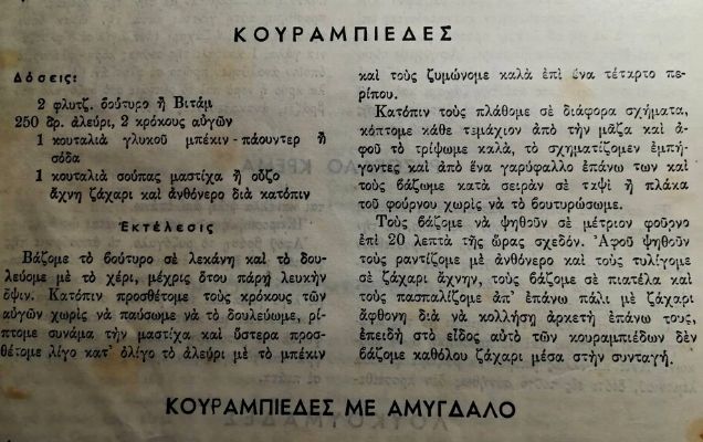 Βλέποντας τη συνταγή για κουραμπιέδες του Νικόλαου Τσελεμεντέ αντιλαμβανόμαστε ότι για τα πιο εύπορα αστικά νοικοκυριά της δεκαετίας του ’50 η αλισίβα (σταχτόνερο) είχε ήδη αντικατασταθεί από το μπέικιν πάουντερ -ενώ χρησιμοπούνταν σταθερά στην αγροτική κουζίνα της εποχής.