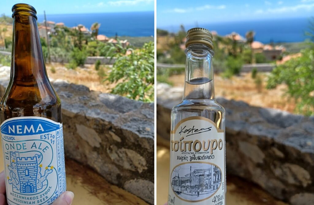 Θα ήταν παράλειψη να βρεθεί φαν της μπίρας στη Λακωνία και να μη δοκιμάσει Sparta Beer, την πρώτη λακωνική φρέσκια μπίρα με ελληνικές βύνες και νερά από τις πηγές του Ταϋγέτου, που φτιάχνει η Λακωνική ζυθοποία. Στη Μεσσηνία γευτείτε τη φρέσκια, αφιλτράριστη και απαστερίωτη μπίρα Nema από τοπικό ζυθοποιείο που βρίσκεται στον Άγιο Νικόλαο. Εξίσου δυνατό το τσίπουρο χωρίς γλυκάνισο της ποτοποιίας Κωστέας – οικογενειακή επιχείρηση της Καλαμάτας από το 1962.