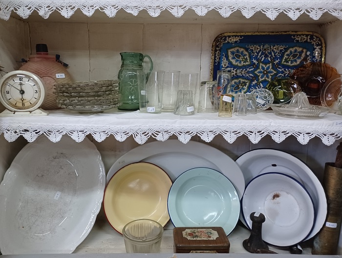 Το μπακαλικάκι που μένει ανοιχτό είναι της κυρίας Αντωνίας, που όσο είχε τα παιδιά στο σχολείο έμενε στη Ναύπακτο και ανεβοκατέβαινε τα Σαββατοκύριακα, αλλά τώρα που τα παιδιά μεγάλωσαν, ήρθε στην Άνω Χώρα μόνιμα. Εδώ βρίσκουν οι υπόλοιποι διαμένοντες είδη πρώτης ανάγκης, κονσέρβες, ζυμαρικά και λίγη μαναβική, εδώ βρίσκουν οι επισκέπτες τα υπέροχα παραδοσιακά γλυκά του κουταλιού, που φτιάχνει μόνη της. Καρυδάκι, κάστανο, φιρίκι είναι μερικές μόνο από τα βαζάκια που μπορείτε να πάρετε φεύγοντας