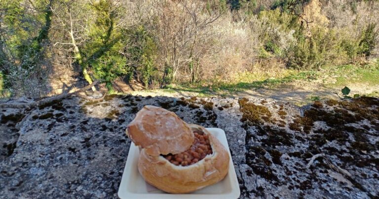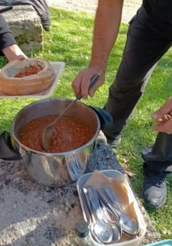 Τώρα που ξαναβρεθήκαμε μετά από πρόσκληση της Περιφέρειας Δυτικής Ελλάδας μας περίμενε ένα άλλο αναπάντεχο γεύμα: φασολάδα κερτεζίτικη, καλοχυλωμένη, από κόκκινο φασόλι σερβιρισμένη σε καρβέλι ψωμιού ζυμωμένο από μυλωνά που έπαιξε το ρόλο του φαγώσιμου μπολ. Ελαιόλαδο, κρεμμύδι και ελιές, ολοκλήρωναν το ξεχωριστό γεύμα στον καθαρό αέρα. Το ιδιότυπο πικνίκ στήθηκε από τον έξοχο οδηγό Γιάννη Κοψίνη (της Periplous Experience), που όταν δεν οργώνει με το καγιάκ τα νερά του Ιονίου και τις λίμνες της Δυτικής Ελλάδας ζει με την οικογένειά του στη Ζαρούχλα, και υποστηρίχθηκε από τον δραστήριο πρόεδρο της κοινότητας Παναγιώτη Δρίβα, την ψυχή του τόπου, τον άνθρωπο που όπως μας είπαν «είναι εδώ για κάθε πρόβλημα που προκύπτει, από το πιο μικρό μέχρι το πιο μεγάλο».