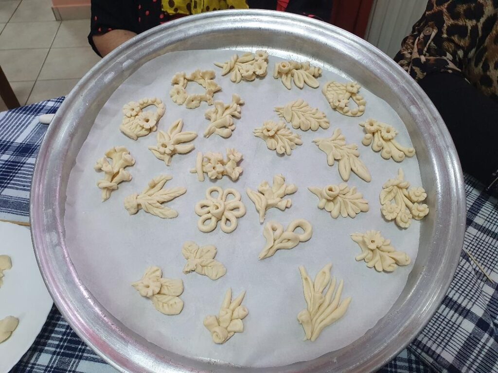 Όλα πλάθονται με τα χέρια και το μοναδικό εργαλείο που μπορεί να χρησιμοποιηθεί για να δημιουργηθούν μικρά στεφανάκια, λουλουδάκια, μπουκετάκια, καλαθάκια, φυλλαράκια και ανθάκια, είναι ξύλινα λεπτά καλαμάκια ή οδοντογλυφίδες. Μπορεί εδώ και 100 χρόνια να ακολουθείται η ίδια συνταγή, αλλά η κάθε γυναίκα μπορεί και αφήνει το δικό της αποτύπωμα στα γλυκό, ανάλογα με την καλλιτεχνική διάθεση που έχει.