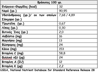 Στον παρακάτω πίνακα, σας παραθέτουμε τη διατροφική σύστασή της σε μακροθρεπτικά συστατικά και μικροθρεπτικά συστατικά (μέταλλα και βιταμίνες, κυρίως αυτά που είναι σε υψηλή περιεκτικότητα).