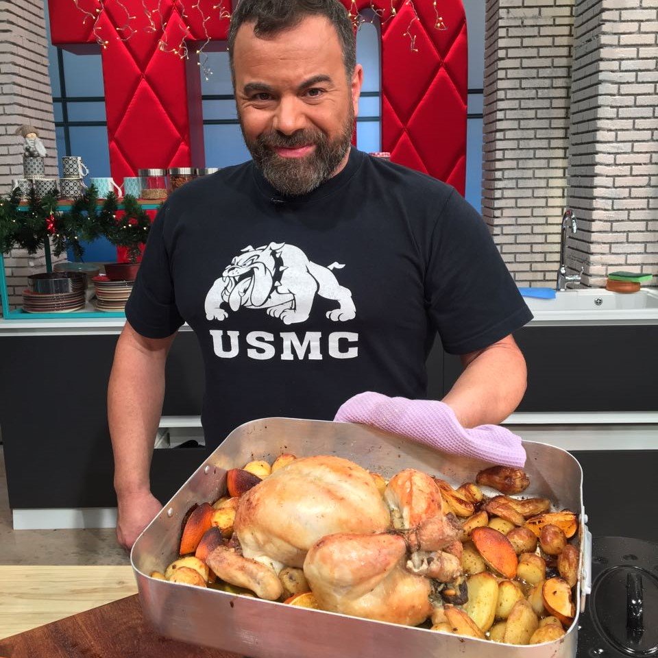 Ο γνωστός μάγειρας, παρουσιαστής και εστιάτορας Βασίλης Καλλίδης είχε φτιάξει για την τηλεοπτική εκπομπή «Πρω1νό» ένα ωραίο, γεμιστό κοτόπουλο.