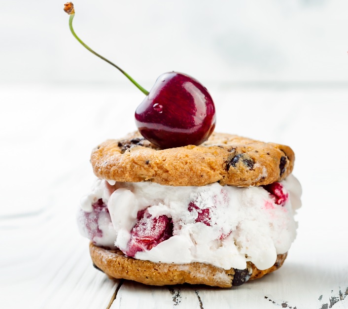 Μπισκοτένια Σάντουιτς με Παγωτό Κεράσι
