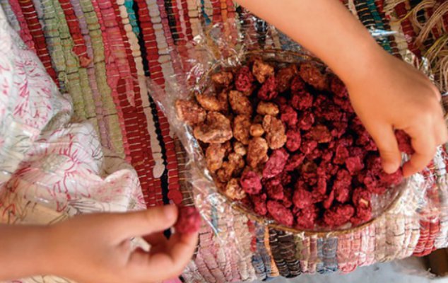 Η μικρή, ζαχαρωτή λιχουδιά, που συχνά έχει ένα χαρακτηριστικό κόκκινο χρώμα, και αποτελεί ένα από τα εμβληματικά γλυκίσματα της Κεφαλονιάς, μπορεί σήμερα να παρασκευάζεται κατά τόνους σε σύγχρονα εργαστήρια ζαχαροπλαστικής, κάποτε όμως οι παρτίδες ήταν ό,τι χώραγε το …θυμιατό του σπιτιού!