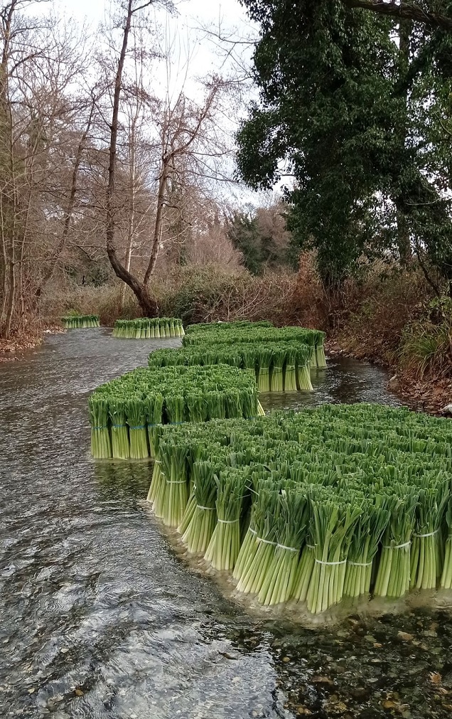 Τα εκατοντάδες δεμάτια με πράσα στον ποταμό «Κρύο Νερό» της Δωροθέας Αλμωπίας, νομού Πέλλας, δεν είναι θαύμα της φύσης. Η μαγική εικόνα, που θυμίζει τα ριζωμένα στο νερό μπαμπού εξωτικών τόπων, στην πραγματικότητα είναι επινόηση των πρασοκαλλιεργητών του χωριού.