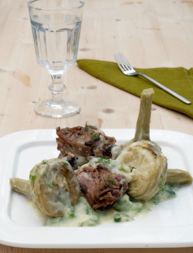 Αρνάκι με φρέσκες αγκινάρες αυγολέμονο