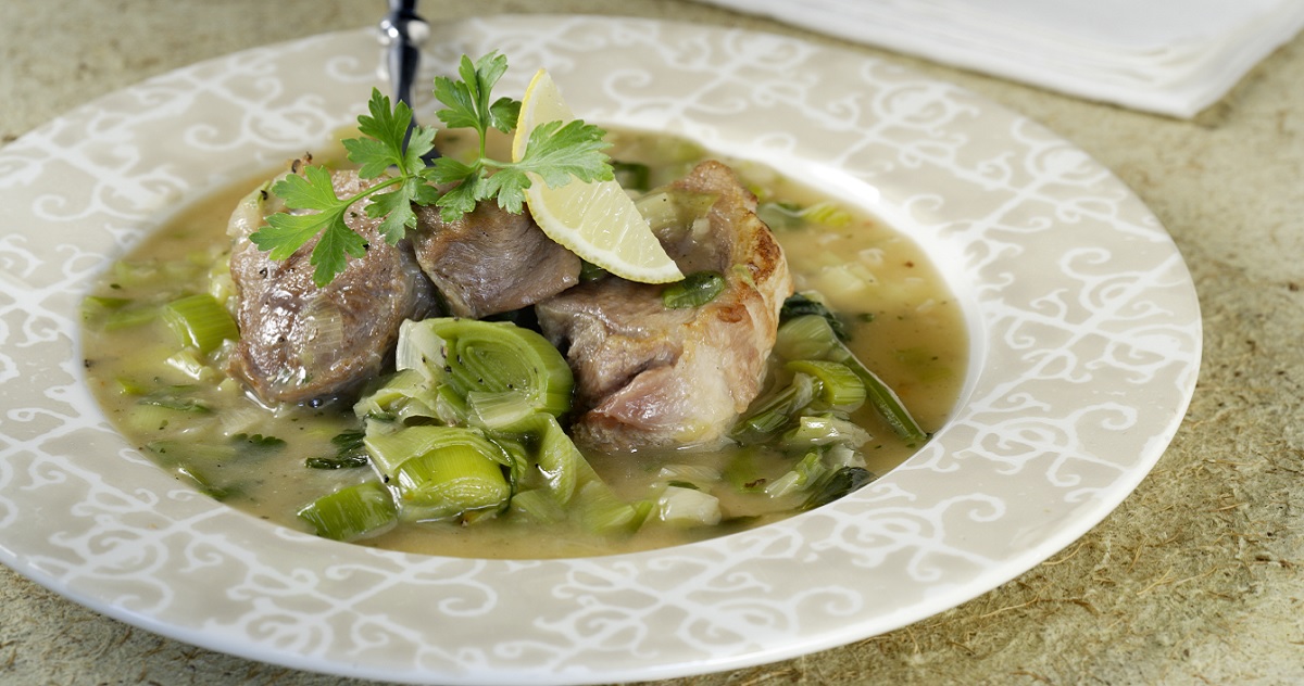 Το τέλειο πιάτο για ισορροπημένο γεύμα με γεύσεις στο φουλ: μπακαλιάρος μαγειρευτός με πράσα και άλλα λαχανικά.