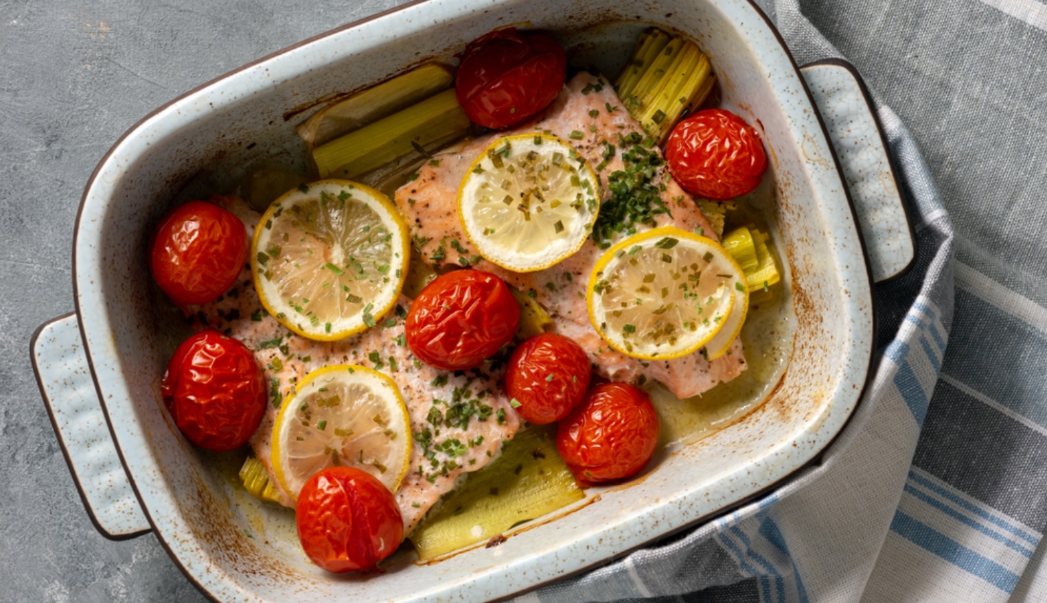 Τα πράσα αγαπούν και το σολομό και τον μπακαλιάρο. Δοκιμάστε να ρίξετε χοντροκομμένες ροδέλες πράσων στο ταψάκι με το ψάρι.