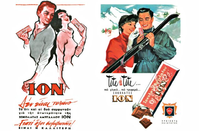 1927. Συνέβη το μοιραίο: στην ελληνική αγορά προστίθεται ένα νέο εταιρικό καταστατικό με την επωνυμία Σοκολατοποιία ΙΟΝ. Χρωστάει το όνομά της στο «ίον το εύοσμον», δηλαδή στους μενεξέδες, που άνθιζαν εκείνη την εποχή στο Φάληρο, όπου ακόμη και σήμερα στεγάζεται η ιστορική φίρμα. Είκοσι χρόνια αργότερα, το 1947, θα πρωτολανσαριστεί η ΙΟΝ Αμυγδάλου. Για τους φίλους, η Ροζ. Το έθνος πέφτει θύμα της φρέσκιας πρόκλησης και αρχίζει τις απιστίες. Η συσκευασία της οπτικοποιεί κατά τρόπο χαρισματικό το συνδυασμό της απόλυτης αθωότητας με την απόλυτη απόλαυση που ενσαρκώνει αυτή η σοκολάτα γάλακτος με το «όσο ακριβώς χρειάζεται» αμύγδαλό της. Πολύ ροζ, λίγο καφέ και ένα αθάνατο κλαδί παντοτινά ανθισμένης αμυγδαλιάς, που υπόσχεται άνοιξη, λιακάδα, καλύτερες εποχές στο διηνεκές. Πώς να μη λυγίσεις;