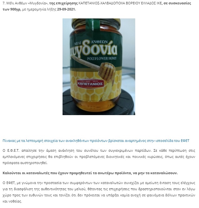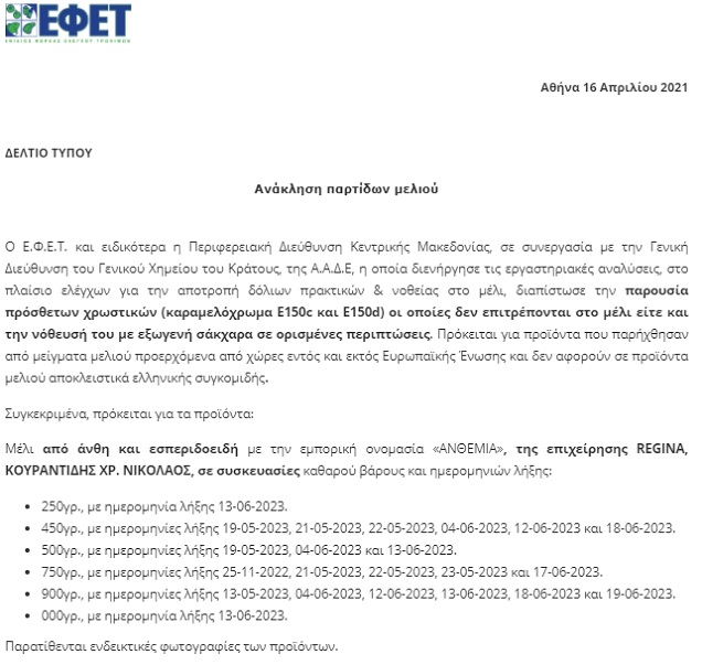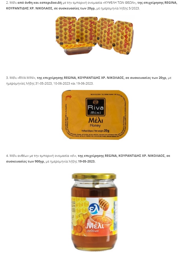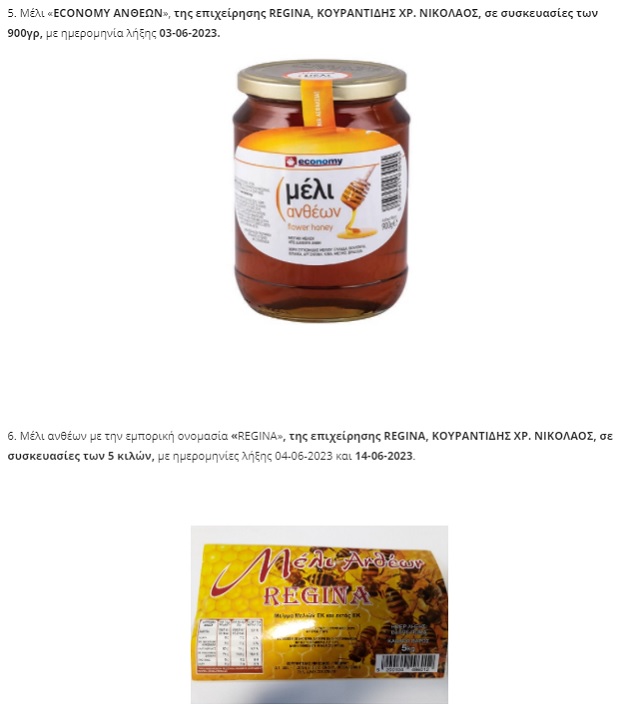 Παρατίθεται αυτούσιο το Δελτίο Τύπου με τις εικόνες των ανακληθέντων μελιών που έδωσε στη δημοσιότητα της Παρασκευή 16/04 ο Ενιαίος Φορέας Ελέγχου Τροφίμων
