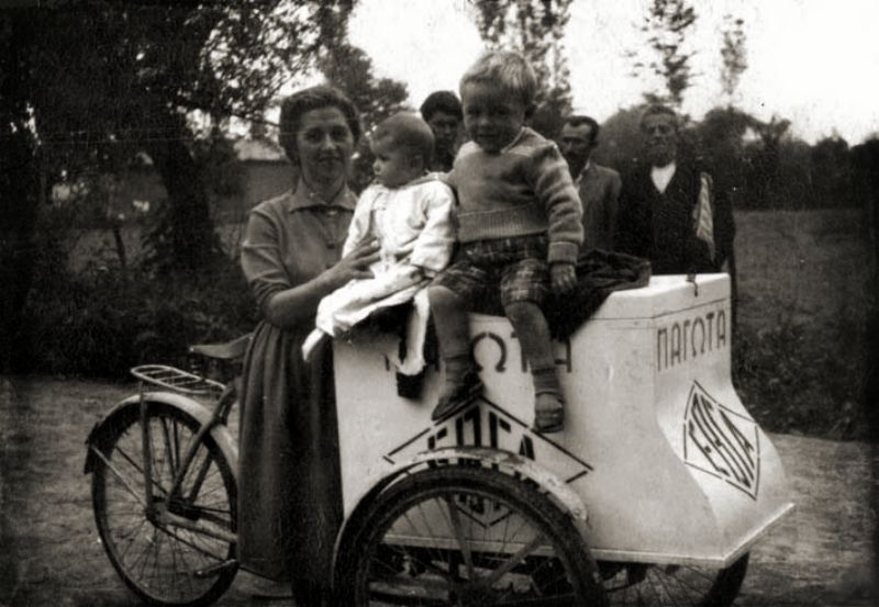 Μάζεψα, λοιπόν, τις εικόνες που βρήκα σκόρπιες στο διαδίκτυο για να μοιραστώ με όσους και όσες τυχόν ενδιαφέρονται ένα μίνι φωτογραφικό αφιέρωμα σε εποχές που το τρίκυκλο τράβαγε μπροστά και στο κατόπι του η μαρίδα με τα κοντά βρακοπαντέλονα –να κυνηγάει τον παγωτατζή μες στην τσιρίδα και τα χάχανα…