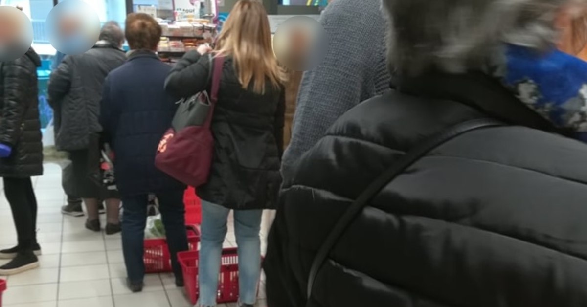 Η εικόνα είναι σημερινή από συνοικιακό σούπερ μάρκετ, στις 8 π.μ. Στην ουρά σαφώς περιμένουν πάνω από …πέντε άτομα, όριο που τέθηκε κατά τα χθεσινά έκτακτα μέτρα για τα take away καταστήματα, ενώ σε ό,τι αφορά την αναγκαία απόσταση μεταξύ των ανθρώπων, αυτή τηρείται κατά σημεία από …ορφανά καλαθάκια που έχουν αφήσει οι κάτοχοί τους για να μη χάσουν τη θέση τους στη σειρά, όσο συνεχίζουν τα ψώνια τους.