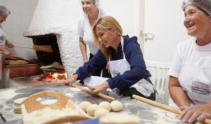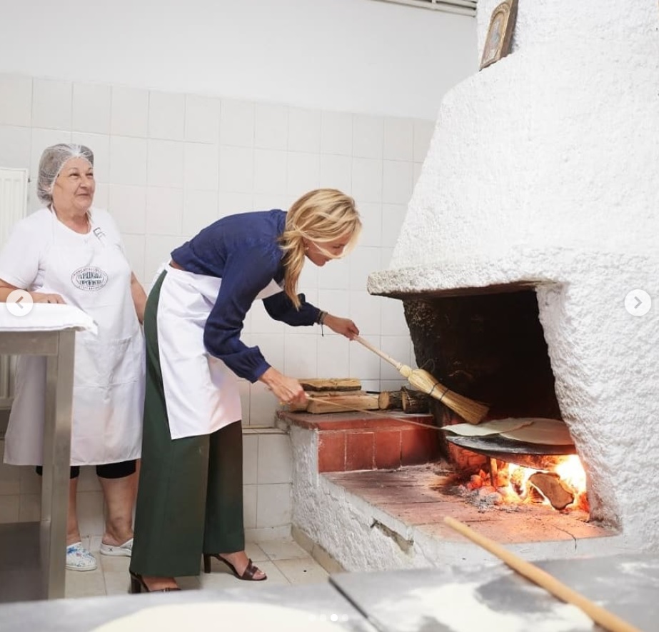 Στο πλαίσιο της επίσκεψής της στη ΔΕΘ, η κ. Γκραμπόφσκι, επισκέφθηκε τον Γυναικείο Αγροτικό Συνεταιρισμό Παραδοσιακών Προϊόντων Αγίου Αντωνίου, όπου φόρεσε λευκή ποδιά, άνοιξε φύλλο και φούρνισε μαζί με τις γυναίκες του συνεταιρισμού. Στιγμιότυπα ανέβασε η ίδια στον προσωπικό της λογαριασμό στο Instagram.