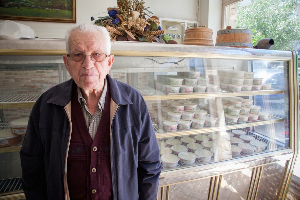 «Από μικρό παιδί με θυμάμαι στο μαγαζί, εδώ μεγάλωσα» μου εξηγεί ο κ. Γιάννης- γιος και τωρινός ιδιοκτήτης του γαλακτοπωλείου. «Παρακολουθούσα με προσοχή την τεχνική του πατέρα κι αγάπησα την δουλειά με τις δυσκολίες της και της χαρές της. Το να παρασκευάζεις γιαούρτια όπως παλιά είναι επιλογή με πολλές θυσίες – πρώτη και καλύτερη, πως δεν έχεις ρεπό. Κάθε μέρα χωρίς σταματημό -ξύπνημα στις 5 και «στρώσιμο» μέχρι τις 22.00- και τις Κυριακές. Τα πρόβατα βλέπετε αρμέγονται κάθε μέρα εδώ και 25 χρόνια από δικούς μας τσοπάνηδες που έχουν βοσκοτόπια, έξω από την Κόρινθο στα γύρω βουνά και το γάλα πρέπει να χρησιμοποιηθεί. Το καλοκαίρι πάλι που είναι η περίοδος ζευγαρώματος κι αναπαραγωγής των «ζωντανών» κλείνουμε 3 μήνες γιατί ακολουθούμε τους ρυθμούς της φύσης και την σεβόμαστε πιστά».