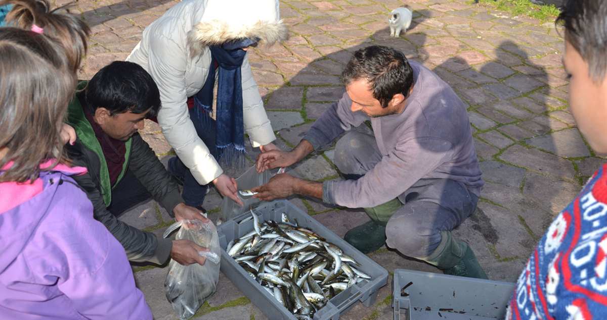Και η ροή των παιδιών που ζητάνε ψάρια συνεχίζεται. «Αύριο;» λέει ένα παιδάκι από τον Αφγανιστάν, που διαπιστώνει πως οι κάσες άδειασαν. «Ναι Αλί αύριο, αύριο θα φάμε όλοι, άμα μας έχει ο Θεός καλά κι ο καιρός μας αφήσει» λέει ο κυρ Γιώργος Καραμανώλης, χαϊδεύοντας πατρικά το κεφάλι του μικρού. «Φίλος μου….» λέει… Φίλος του.