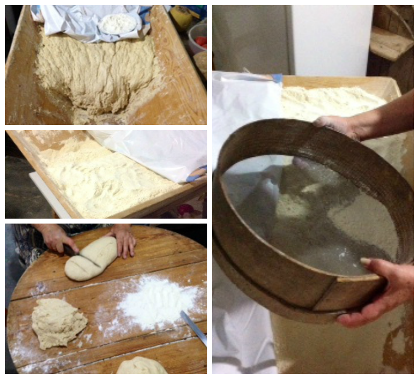 Κουνενός! Άγνωστη λέξη για τους περισσότερους και για ακόμα πιο πολλούς άγνωστη και η μορφή του. Αυτό το ιδιαίτερο μείγμα λοιπόν χρησιμοποιείται για να φτιάξουν το προζύμι: ρεβίθι τριμμένο στο μύλο για να πάρουμε το ρεβιθάλευρο, ζεστό νερό, αλάτι και πιπέρι. Το «κυριότερο» συστατικό όμως είναι το ξεμάτιασμα. Τον κουνενό λοιπόν τον ετοίμαζε η γιαγιά, αυτή μόνο τον έβλεπε γιατί τα πολλά μάτια θα το φτιάρμιζαν (μάτιαζαν για τους υπόλοιπους). Ετοιμαζόταν από βραδύς και κατά τη διάρκεια της νύχτας, αφού τον σκέπαζε για να φουσκώσει, σηκωνόταν από το κρεβάτι, τον παρακολουθούσε και φυσικά το σταύρωνε για να πετύχει. Το ίδιο βράδυ οι υπόλοιπες γυναίκες κοσκίνιζαν το αλεύρι και ήταν πολλές γιατί πως αλλιώς θα ζυμωνόταν 50 κιλά αλεύρι. Γιατί τόσο πολύ;