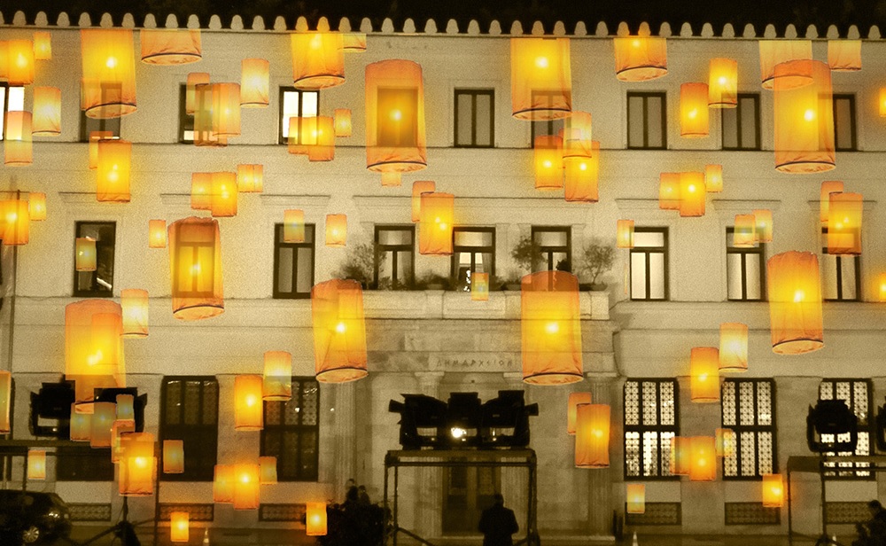 Στις 24 Δεκεμβρίου, ο ουρανός στην πλατεία Κοτζιά γεμίζει με τα παραδοσιακά φαναράκια της Νύχτας των Ευχών, σε ένα εντυπωσιακό οπτικοακουστικό show από το Athens Digital Arts Festival με φόντο το δημαρχιακό μέγαρο.