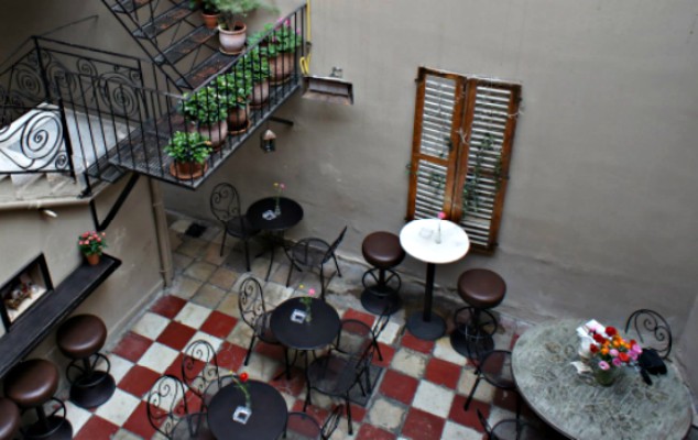 Το θέμα είναι να σου έχει σφυρίξει κάποιος από πριν πως αν περάσεις την καγκελόπορτα του αριθμού 47, στον πεζόδρομο της Βαλτετσίου, και διασχίσεις το στενό εξωτερικό διάδρομο, θα βρεθείς σε μια κουκλίστικη αυλή με παλιακό πλακάκι-σκακιέρα, τραπεζάκια καφενείου και μια εσωτερική, στριφογυριστή σιδερένια σκάλα, που κάνουν την ατμόσφαιρα μαγική.
