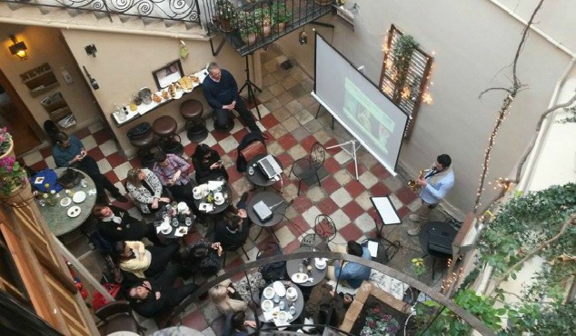 Ιδιαίτερα τα φθινοπωρινά απομεσήμερα, όταν ο κόσμος είναι «τόσος όσος…», το να περάσεις κάποια ώρα στην ατμοσφαιρική αυτή αυλή με καλή παρέα είναι ίσως πιο απολαυστικό κι απ’ τα λαχταριστά του μεζεδάκια. Γιατί η γυάλινη οροφή αφήνει το χλομό φως του Οκτώβρη να περνάει στο χώρο, χωρίς να κινδυνεύεις από στιγμή σε στιγμή να δεχτείς και όλη τη βροχή του Οκτώβρη στο κεφαλάκι σου.