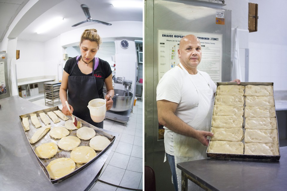 Στο παρασκευαστήριο της Πεσμαζόγλου συναντάω τον Βασίλη που έμαθε την τέχνη του ζυμώματος δίπλα στον κύριο Γιάννη και ξέρει όλα τα μυστικά. «Εδώ όλα ζυμώνονται στο χέρι» μου εξηγεί «δεν σταματάμε να φουρνίζουμε ποτέ ενώ τα υλικά που χρησιμοποιούμε παραμένουν τα ίδια όπως παλιά -μαναβική από την κεντρική αγορά, ελληνικά αυγά από τα Μέγαρα από τον γκουρού των αυγών Δημήτρη Ραγκούση στο Νέο Κόσμο που είναι συνεργάτης μας πάνω από 70 χρόνια, βούτυρο γάλακτος από γειτονικό μαγαζί στην Ευρυπίδου, άλευρα από τους Μύλους Θράκης και βαρύτητα στην καθαριότητα- τίποτα βιομηχανικό και φυσικά κανένα υποκατάστατο στα τυριά». «Στις βιτρίνες μας έχουν προστεθεί εκτός από την τυρόπιτα κουρού και την κασερόπιτα και άλλα προϊόντα –μπουγάτσα, σπανακόπιτα, τυρόπιτα φύλλου κρεατόπιτα, πίτσα, λουκανικόπιτα, ζαμπονοτυρόπιτα και πεινιρλί σκεπαστό –εφάμιλλα στην γεύση και στην ποιότητα» μου λέει τελειώνοντας η Ιωάννα.