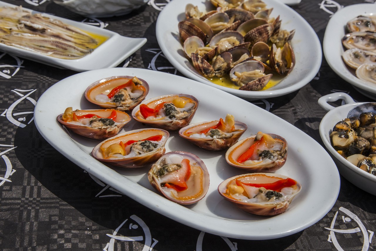 Όσο μεγαλύτερο είναι το βάθος που βρίσκεται ένα όστρακο τόσο πιο έντονη είναι η γεύση του ιωδίου, φέρτε ως παράδειγμα τις καλόγνωμες. Άλλος ένας γευστικός μεζές καταφτάνει, πρόκειται για τις πορφύρες, σαλιγκάρι του βυθού που συναντάται στα 3 με 11 μέτρα. Και μετά από τις πορφύρες, γυαλιστερές που πνίγουμε στο λεμόνι πριν τις φάμε και οι φοβερές σκάτιες σαγανάκι, εξαιρετικό όστρακο που είναι αγαπημένος μεζές των Ιταλών που τις σερβίρουν πολλές φορές σε μακαρονάδες.