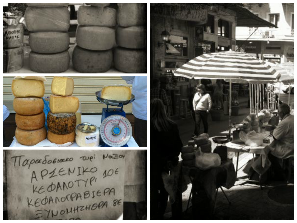 «Για ορίστε, με δοκιμή το τυράκι» διαλαλεί την πραμάτεια της η Ναξιώτισσα κυρά, στην οδό Μιαούλη, ούτε τρία λεπτά με τα πόδια απ’ την Ερμού και τη στάση του μετρό Μοναστηράκι. Κεφαλοτύρια, κεφαλογραβιέρες, αρσενικό, μυζήθρες και ξινομυζήθρες, όλα φερμένα απ’ το Νησί, όλα φτιαγμένα με τον παραδοσιακό τρόπο, πωλούνται κάθε χρόνο τέτοιες μέρες σ’ ένα υπαίθριο πασχαλινό «παζάρι» αγροτικών και κτηνοτροφικών προϊόντων που αλλάζει την εικόνα της Πλατείας Ηρώων. Οι Ναξιώτες –κυρίως απ’ το χωριό Φιλώτι– είχαν πάντα ιδιαίτερους δεσμούς με την ιστορική συνοικία και οι παλιοί Αθηναίοι, κάτοικοι ή απασχολούμενοι στην Ερμού, την Αθηνάς, το Μοναστηράκι και τις γύρω περιοχές του κέντρου, κατηφόριζαν ως εδώ για να ψωνίσουν τα ιδιαίτερα καλούδια της ναξιώτικης γης. Πάνω από πενήντα χρόνια πραγματοποιείται το μεγαλοβδομαδιάτικο αλισβερίσι μεταξύ πόλης-χωριού, που δε συνδέει μόνο το παρελθόν με το παρόν δίνοντας μια απρόσμενη διάσταση το αστικό τοπίο (γκράφιτι και πάγκος με κεφαλοτύρι, αυτά είναι), αλλά προμηθεύει και τους Αθηναίους με αυθεντικά παραδοσιακά τυριά και κυκλαδίτικα αρνιά και κατσίκια. Ωραία φάση.
