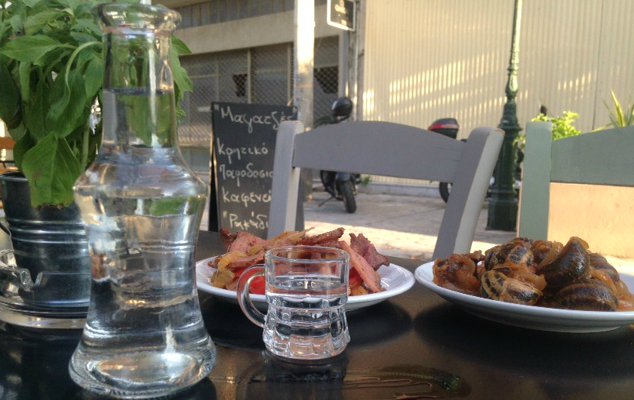 Λίγα μέτρα πιο κάτω συναντήσαμε το Μαγατζέ ένα κρητικό παραδοσιακό καφενείο με εκλεκτά, παραδοσιακά, χειροποίητα εδέσματα (το απάκι και οι χοχλιοί είχαν την τιμητική τους στο τραπέζι μας), με τα παξιμάδια και τα καλτσούνια να έρχονται κατευθείαν από τη Μεγαλόνησο, φιλόξενους ανθρώπους και παγωμένη ρακή. Φυσικά δεν έλειπε ο καφές στη χόβολη και η απαραίτητη παρέα με την κιθαρούλα για να ολοκληρώσει το υπέροχο σκηνικό που έχουν φτιάξει οι ευγενέστατοι ιδιοκτήτες του μαγαζιού.