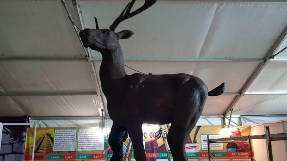 Εκατόν είκοσι κιλά σοκολάτας, τύπου κουβερτούρας, χρειάστηκαν για να παρασκευαστεί το μεγαλύτερο, όπως όλα δείχνουν, σοκολατένιο ελάφι του κόσμου. Το εντυπωσιακό σοκολατένιο γλυπτό, ύψους τεσσάρων μέτρων και δέκα εκατοστών, του δημιουργού πολύμορφων κατασκευών Βασίλη Μιχαηλίδη, διεκδικεί ένα βραβείο Γκίνες. Το …γλυκύτατο ελάφι του βρίσκεται στην Κατερίνη παρουσιάστηκε στο κοινό τις ημέρες των Χριστουγέννων και έκλεψε τις εντυπώσεις.